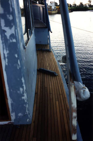 • Plywood used under teak decking, not marine grade and end grain poorly sealed with half round timber moulding