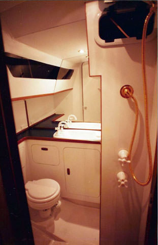 Keel cooled Perkins, custom made refrigerator and freezer, extensive teak trim to cockpit, with moulded lexan screen with stainless steel trim.